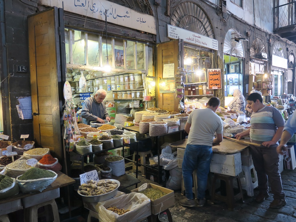 Wir schlendern durch den Souk und die vielen engen Gassen der Altstadt. Das Leben pulsiert und ohne das ständige Dröhnen am Himmel käme man wohl nicht auf die Idee, dass rundherum noch Krieg herrscht. Trotz des geschäftigen Treibens in den Straßen bleibt uns nicht verborgen, dass viele Geschäfte geschlossen sind. Eine Folge der kriegsbedingten Wirtschaftskrise. Im Kloster der Franziskaner erzählt uns P. Bahschat, dass die Kirche im Laufe des Krieges sechs Mal von Mörsergranaten getroffen wurde. Und zwar "gezielt" beschossen von den Rebellen. Auf diese Feststellung legt der Mönch Wert.