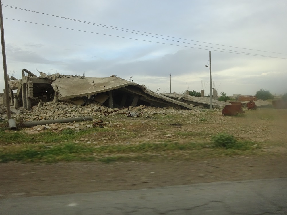 Auf der Fahrt Richtung Aleppo passieren wir nicht nur wieder unzählige Militärposten sondern auch eine Vielzahl völlig zerstörter Dörfer, teilweise wirklich dem Erdboden gleich gemacht. Wer soll hier jemals wieder leben?