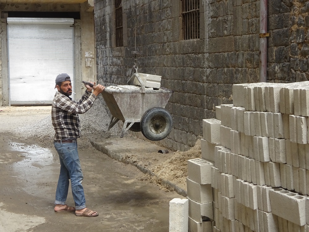 P. Magdi führt uns durch die Altstadt zu einer im Krieg zerstörten Kirche, die nun wieder aufgebaut wird. Über der Kirche wird auch gleich noch ein kleines Begegnungszentrum errichtet. Der dreistöckige "Neubau" bildet einen seltsamen Kontrast zu den Ruinen rundum. Zugleich wird der Funke Hoffnung spürbar, den die Jesuiten damit versprühen.