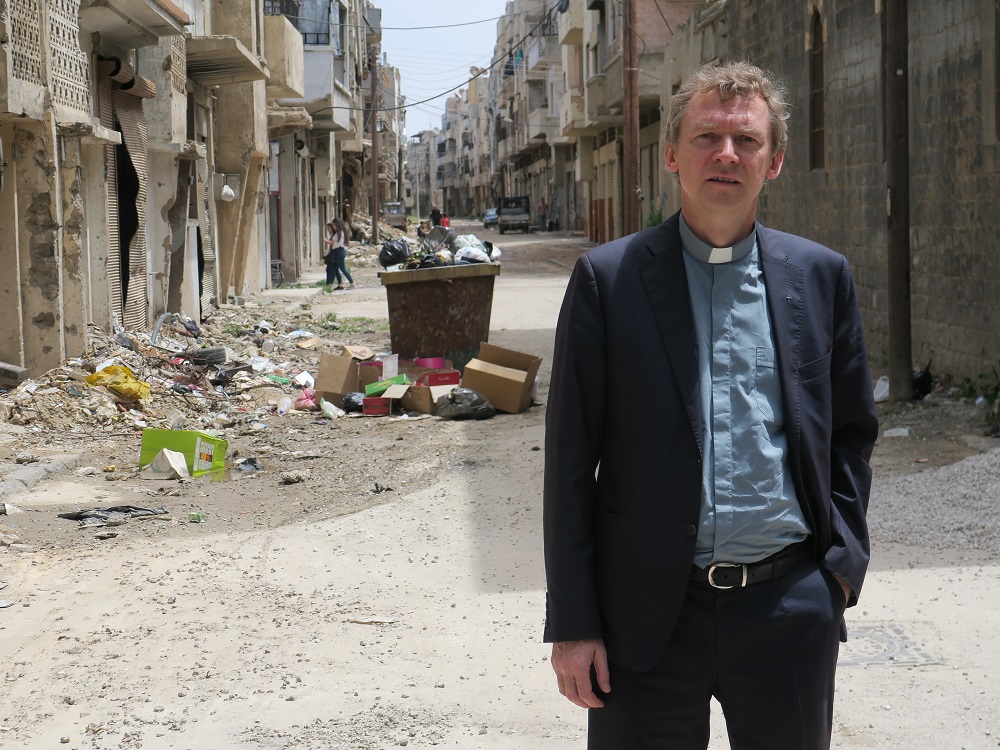 Das Zentrum von Homs ist zum Teil immer noch ein einziger Trümmerhaufen. Wir haben die Gelegenheit zu einem langen Gespräch mit Bischof Jean Abdo Arbach. Im Prinzip lässt sich seine Botschaft auf folgenden Satz zusammenfassen: "Helft uns, damit wir in unserer Heimat bleiben können."