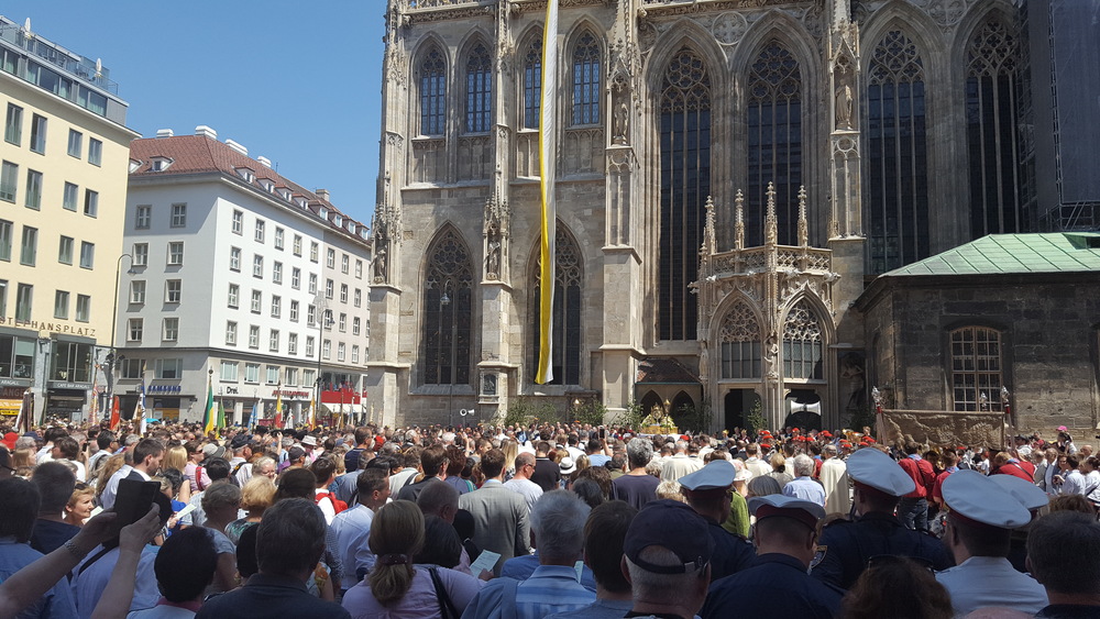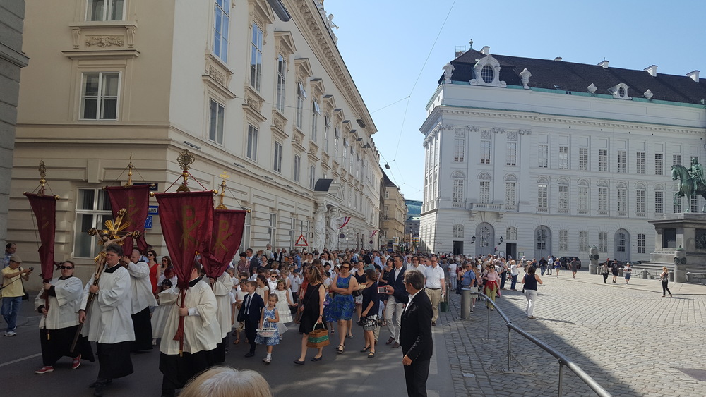 An dem traditionellen Wiener Stadtumgang, der nach einem Pontifikalamt im Stephansdom über die Kärntner Straße zunächst zum Michaelerplatz, dann über den Graben zur Peterskirche und schließlich zurück zum Stephansplatz führte, nahmen wieder zahlreiche Gruppierungen, Orden, Verbände und Politiker teil - darunter Kanzleramtsminister Gernot Blümel (VP), die Wiener Stadträtin und frühere Bezirksvorsteherin Ursula Stenzel (FP), der Präsident des Obersten Gerichtshofs, Eckart Ratz, und weitere Landes- und Bezirkspolitiker.