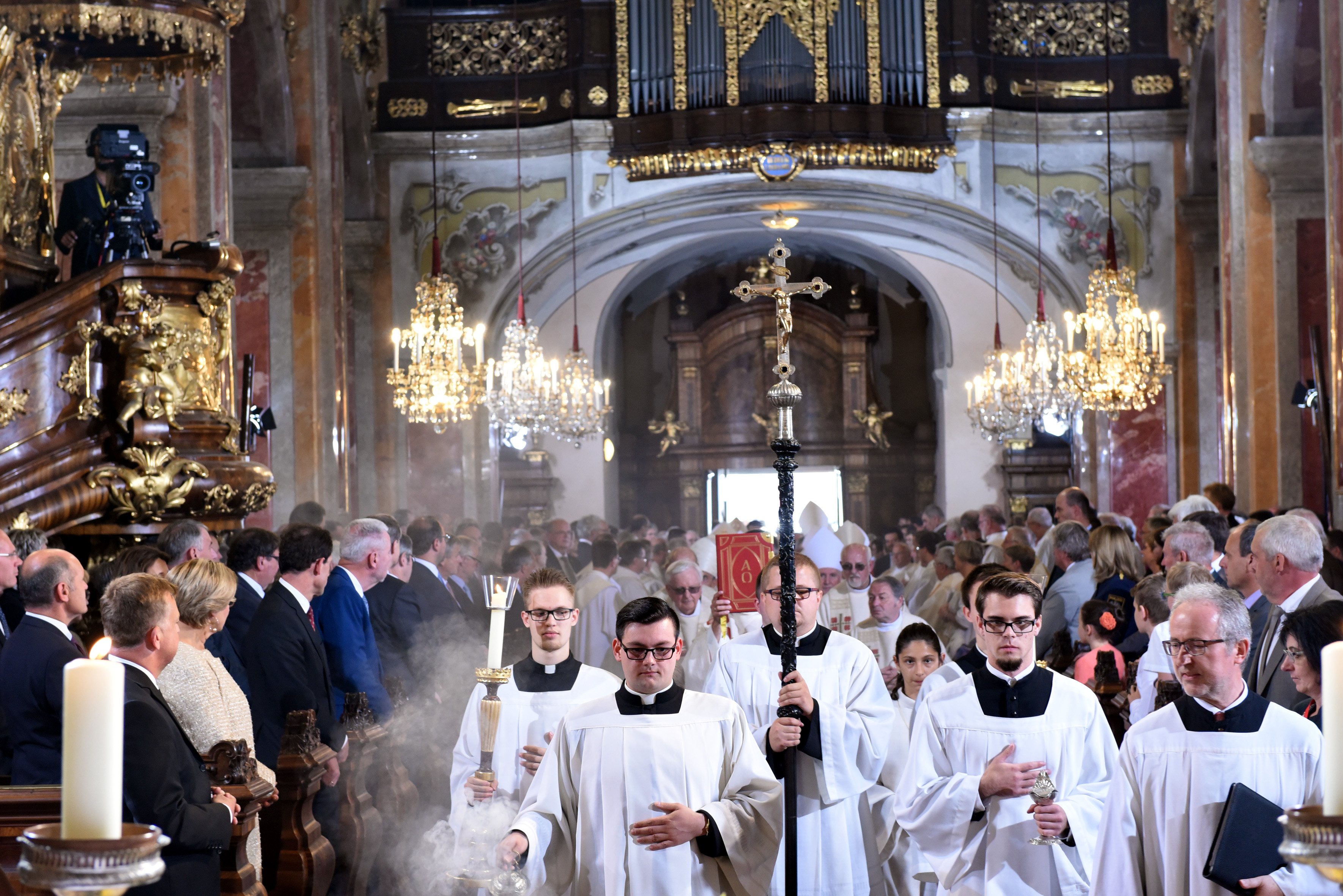 Mit dem neuen St. Pöltner Bischof feierte Kardinal Schönborn die Festmesse, der als Erzbischof der Wiener Kirchenprovinz vorsteht, zu der auch die Diözese St. Pölten gehört. Weitere Konzelebranten am Altar waren der Salzburger Erzbischof Franz Lackner, der Linzer Bischof Manfred Scheuer, der Eisenstädter Bischof Ägidius Zsifkovics sowie Weihbischof Leichtfried. Als Spitzenvertreter von Bund und Land nahmen Nationalratspräsident Wolfgang Sobotka und die niederösterreichische Landeshauptfrau Johanna Mikl-Leitner an der Feier teil. Insgesamt feierten 21 Bischöfe, 10 Äbte, 1 Ordensprovinzial und 5 Ordensoberinnen mit. Die Messgewänder für alle Zelebranten und die Diakone stellte das Stift Göttweig zur Verfügung.