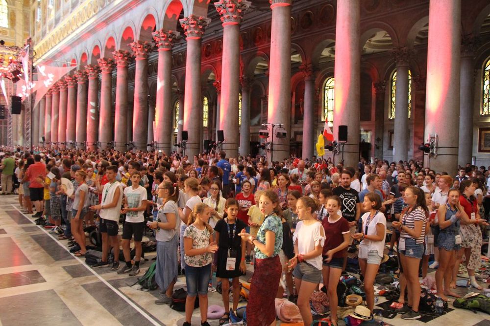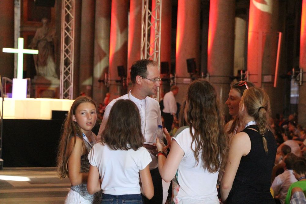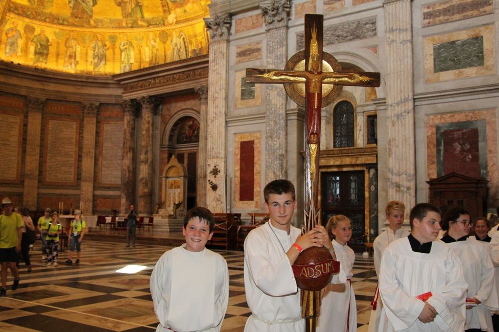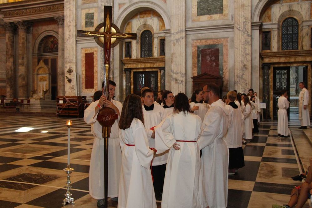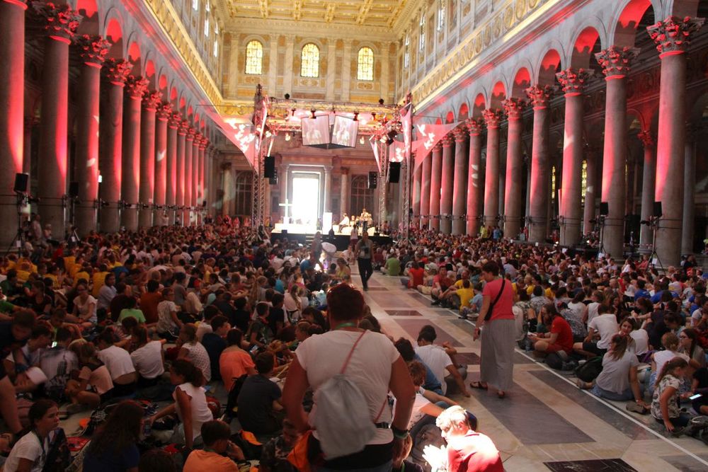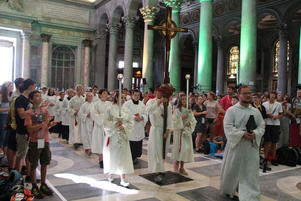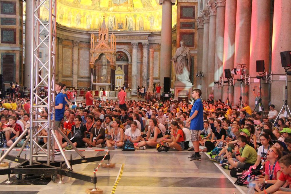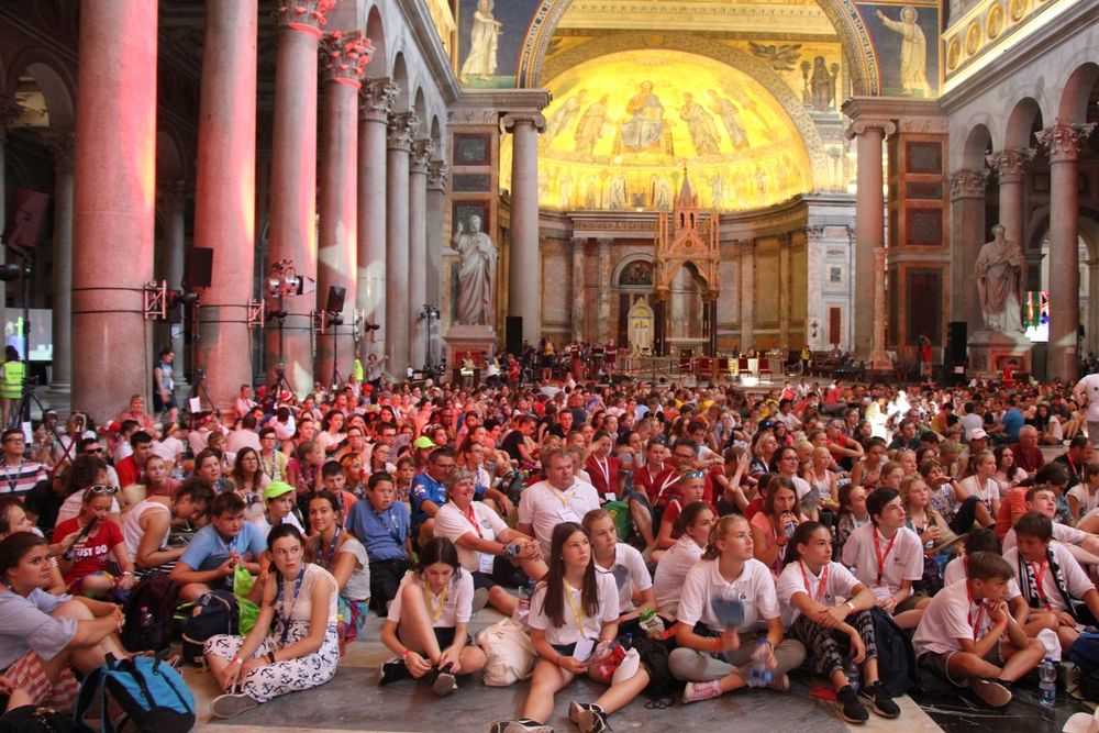 An die 4.000 Ministranten aus Österreich haben am Mittwochabend beim "Österreicher-Treffen" in der römischen Basilika St. Paul vor den Mauern gemeinsam mit Jugendbischof Stephan Turnovszky Gottesdienst gefeiert. Die Jugendlichen waren Teilnehmer der dieswöchigen Internationalen Ministrantenwallfahrt und waren bereits am Dienstag Papst Franziskus begegnet. Die große Beteiligung "finde ich als Bischof total ermutigend", sagte Turnovszky am Donnerstag im Gespräch mit "Kathpress". Statt einer "Untergangsstimmung" strahlten die jungen Leute "Freude am Glauben" aus.