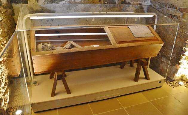 Die Mumie des "Luftg'selchten Pfarrers" oder auch "Lederne Franzl" ist wieder in der Gruft der Pfarrkirche St. Thomas am Blasenstein im Unteren Mühlviertel in Oberösterreich zu sehen, nachdem sie in den vergangenen Monaten in München war. Dort wurde sie wissenschaftlichen Untersuchungen und fachgerechten konservatorischen Maßnahmen unterzogen, berichtete die Diözese Linz am Donnerstag. Oliver Peschel, Rechtsmediziner und Konservierungsbeauftragter für den "Ötzi", sowie der Pathologe und Mumienexperte Andreas Nerlich waren mit assoziierten Instituten an den Arbeiten an der Mumie betraut. Begleitet wurde der Prozess vom Kunstreferat und Diözesankonservatorat der Diözese Linz.