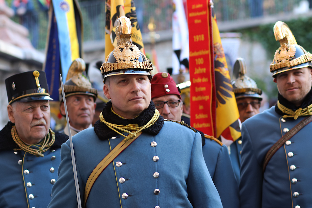 Georg Habsburg-Lothringen, an zweiter Stelle der Nachfolge als Oberhaupt des "Hauses Habsburg", regte bei der Kranzniederlegung am Friedensdenkmal dazu an, über die Ereignisse vor 100 Jahren nachzudenken. Nur aus dem Verständnis heraus, was Krieg und Krise bedeuteten, könne wertgeschätzt werden, "was wir heute haben". 1918 Jahren habe sich Europa geeinigt und begonnen zusammenzuarbeiten. Das sei etwas "Wunderschönes" und ein Grund für Optimismus. Es gelte auch weiterhin daran zu arbeiten, "dass Europa weiter zusammenwächst und die europäischen Staaten besser zusammenarbeiten". Krieg und Krise hätten auf dem Kontinent keinen Platz mehr, so Habsburg-Lothringen.