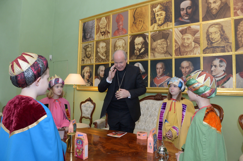 Sternsingerbesuch aus Pfarre Velm bei Wiener Erzbischof - Bis 6. Jänner singen und sammeln 85.000 Mädchen und Buben in ganz Österreich für Not leidende Menschen in Entwicklungsländern.
