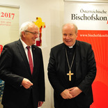 Gemeinsame Pressekonferenz von Kardinal Schönborn und Bischof Bünker im Rahmen der Begegnung der österreichischen Bischofskonferenz mit Spitzenvertretern der evangelischen Kirche.