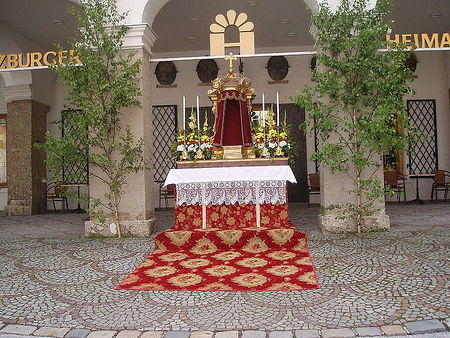 Das Brauchtum der Fronleichnams-Prozession geht auf das Jahr 1277 zurück, wo in Köln erstmals eine Prozession am Fronleichnamstag stattfand. Bis heute schreiten die Katholiken dabei durch die Straßen und zeigen die Hostie in einer Monstranz als Zeichen Christi in der Welt. An Kreuzweg-Altären wird dabei angehalten und gebetet. In manchen Orten - wie in diesem Jahr in Kärnten und in Oberösterreich - finden die Prozessionen auch zu Wasser statt. In der Steiermark hat sich der Brauch großer Blumenteppiche herausgebildet. Mancherorts ist es auch üblich, entlang der Prozessionsstraßen grüne Birken aufzustellen.