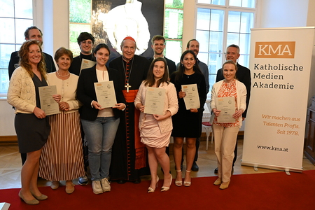 Zehn Nachwuchsjournalistinnen und -journalisten erhielten Zertifikate von Kardinal Schönborn - Journalistin Gössinger: Plädoyer für "faktenbasierten Journalismus mit Haltung gerade auch in Zeiten von KI und Social Media" - Schönborn: "Guter Journalismus ist für Kirche und Gesellschaft ein wichtiger Faktor"