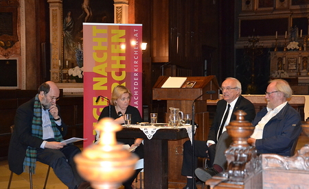 "Lange Nacht"-Podiumsgespräch: Bischof Bünker, der früherer Präsident des Deutschen Bundestags Thierse und Vertreter der Österreichischen Bischofskonferenz in Brüssel Kuhn, suchten Ansätze für Wege aus der europäischen Demokratie-Krise