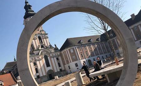 Objektkünstler David Spoerri schuf Altar mit Bronzereliefs zum Thema Armut und Reichtum, Salzburger Künstler Wilhelm Scherübl eine Betonskulptur - Eröffnung im Juni 2019
