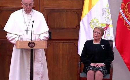 Auftakt zum einwöchigen Besuch in den Anden, der den Papst auch nach Peru führt - Telegramm für Argentinier, Empfang am Flughafen von Santiago durch Staatspräsidentin Bachelet und Stopp bei Grab von Armenbischof Alvear
