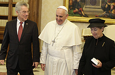 Bundespräsident Heinz Fischer ist am 13. November 2014 im Vatikan mit Papst Franziskus zusammengetroffen. Die Begegnung dauerte rund 30 Minuten, länger als bei Audienzen für Staatsoberhäupter üblich.