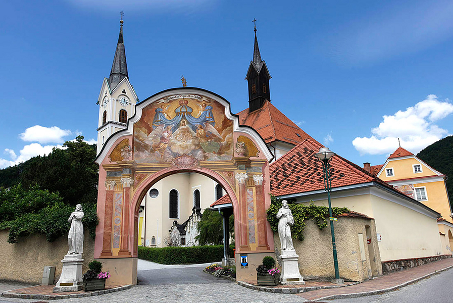 Die Wallfahrtskirche Maria Heimsuchung wurde 1678 bis 1681 in ihrer heutigen Form vom Baumeister Jakob Schmerlaib anstelle einer älteren, angeblich 1437 von Ritter Georg von Graden 1446 gestifteten Kirche errichtet. Die beiden Seitenkapellen wurden im Jahre 1712 gebaut. Im Inneren der Kirche befindet sich die wundertätige Gnadenstatue - eine gotische Schnitzfigur der thronenden Maria mit dem Kind.