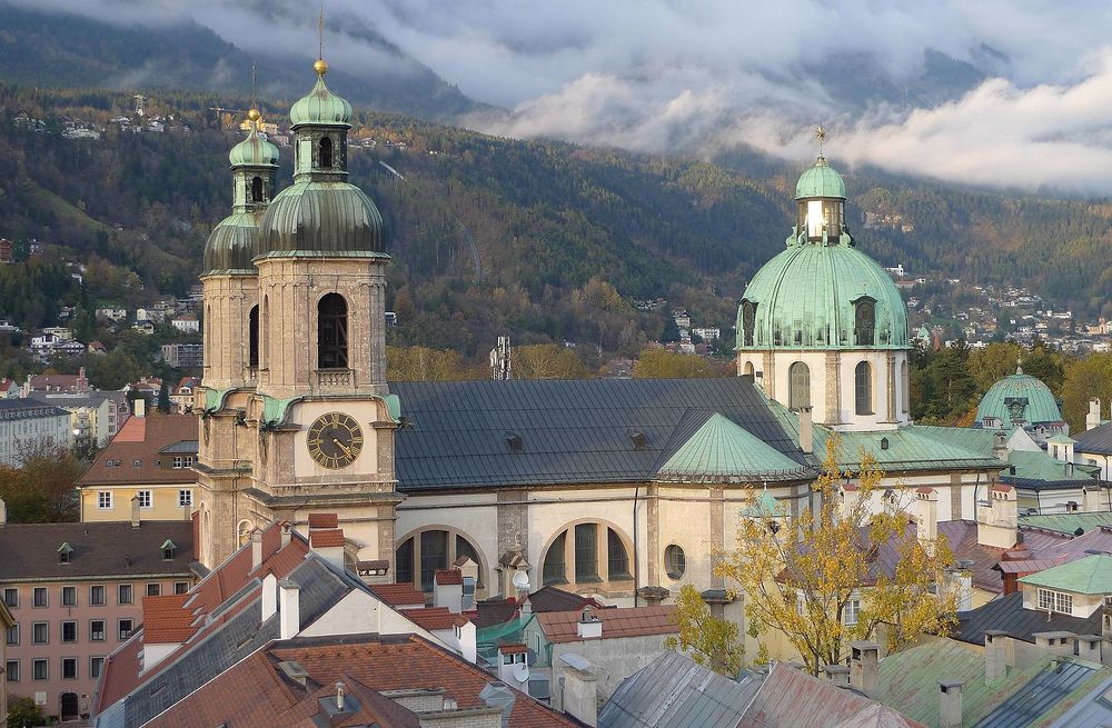 Erstmals urkundlich erwähnt wurde eine „St. Jakobskirche“ im Jahre 1270 in Innsbruck. 1494 entstand dann die älteste erhaltene Ansicht der Kirche. Nachdem 1689 durch ein Erdbeben schwere Schäden an der Kirche entstanden, wurde sie zwischen 1717 und 1724 im barocken Stil neu erbaut. Erneut beschädigt wurde der Dom zu Innsbruck, wie der Dom zu St. Jakob oft genannt wird, im Jahr 1944 durch alliierte Bombentreffer. Die Weihe der Kirche an St. Jakob verweist auf die Lage von Innsbruck an der Pilgerstraße (Jakobsweg) nach Santiago de Compostela in Spanien, einer der drei bedeutendsten Pilgerstätten des Mittelalters neben Jerusalem und Rom.