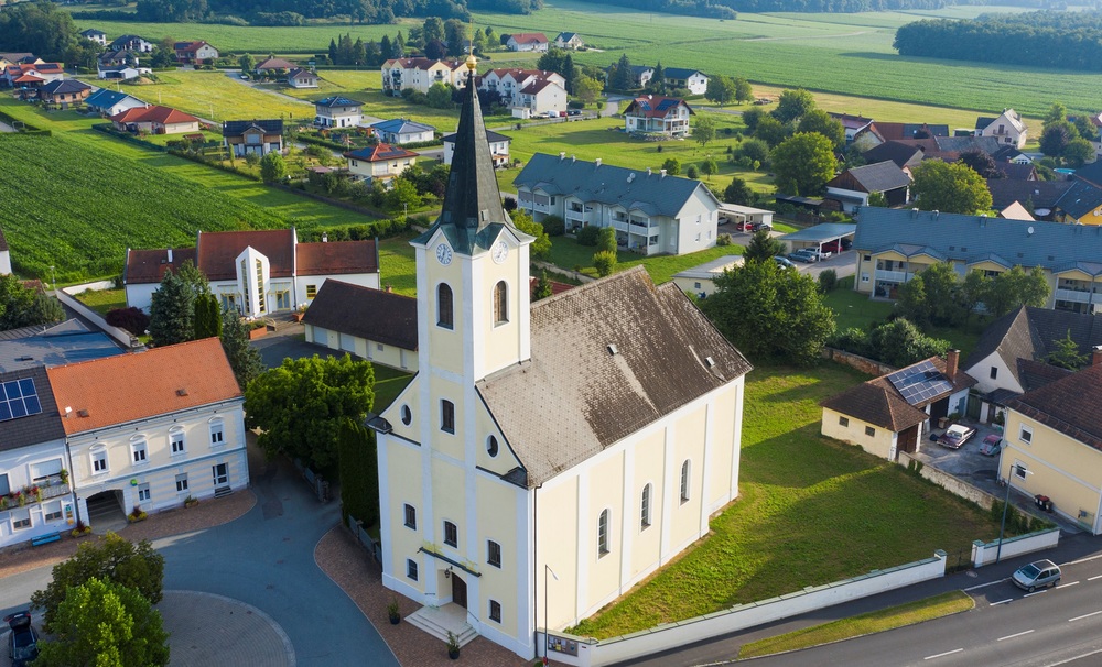 Eingebettet in das untere Raab- sowie das Lafnitztal, nahe der ungarischen Grenze, liegt die Pfarrgemeinde Mogersdorf mit ihren Filialgemeinden Weichselbaum, Deutsch Minihof, Wallendorf und Rosendorf. Die erste erwähnte Kirche aus dem 12. Jahrhundert war dem Heiligen Martin geweiht, der heutige Bau geht auf die Jahre 1775/1776 zurück und hat als Patrozinium den Heiligen Josef. Im Zuge einer Generalsanierung 2013/14 wurde der Altarraum neu gestaltet und macht die Kirche sehr hell und einladend. Ebenso konnten Deckenmalereien aus dem Jahr 1857 freigelegt und restauriert werden. Diese zeigen Szenen aus der Türkenschlacht bei Mogersdorf am 1. August 1664, die ein prägendes historisches Ereignis war. Erstmals gelang es, ein vereintes christliches Heer zusammenzustellen, das eine starke Übermacht der Osmanen besiegte.