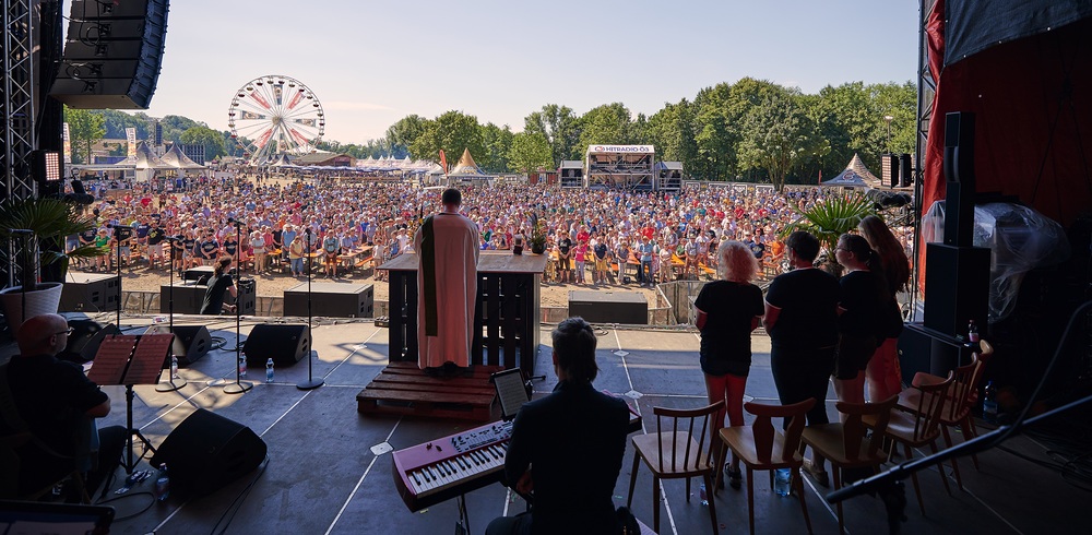 Direkt von der Hauptbühne kommt der ökumenische Live-Gottesdienst. "Der Gottesdienst vom Woodstock der Blasmusik hat stets eine besondere Stimmung. Über 5000 Musikbegeisterte feiern am Sonntagmorgen vor derselben Bühne, auf der am Abend zuvor noch Größen der Szene wie etwa die ‚Fäaschtbänkler‘ aufgetreten sind, Gottesdienst, loben Gott und das Leben", sagt Bettina Növer, Jugendpfarrerin und eine der LiturgInnen des Gottesdienstes.